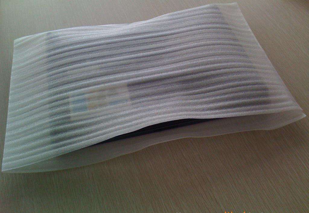 1 珍珠棉,可通過覆膜,制成覆膜珍珠棉,并制成珍珠棉袋,合適于電子產(chǎn)品及一些塑膠產(chǎn)品的包裝,可部分替代氣泡袋。